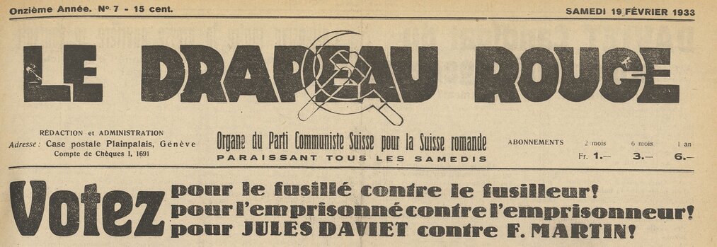 En février 1933, il est au cœur de la campagne qui conduit à l’élection de Frédéric Martin au Conseil des États: la droite et l’extrême droite font porter la responsabilité des violences sur les manifestant·e·s et agitent la menace révolutionnaire, tandis que la gauche dénonce le rôle du candidat dans la mobilisation de l’armée et son intervention meurtrière.