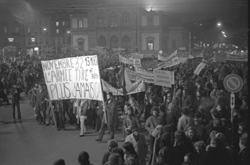 Ils sont alors stimulés par les groupes d’extrême gauche qui organisent une grande manifestation antimilitariste couronnant plusieurs mois de luttes à Genève et en Suisse romande.